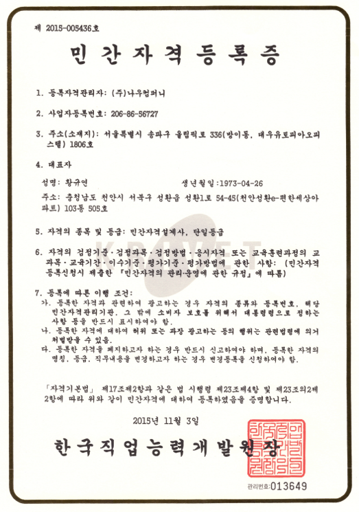 민간자격 설계사(Private Qualified Designer) 민간자격