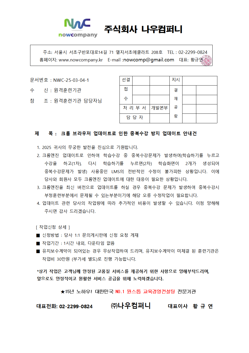 크롬엔진 업데이트로 인한 중복수강 방지 작업