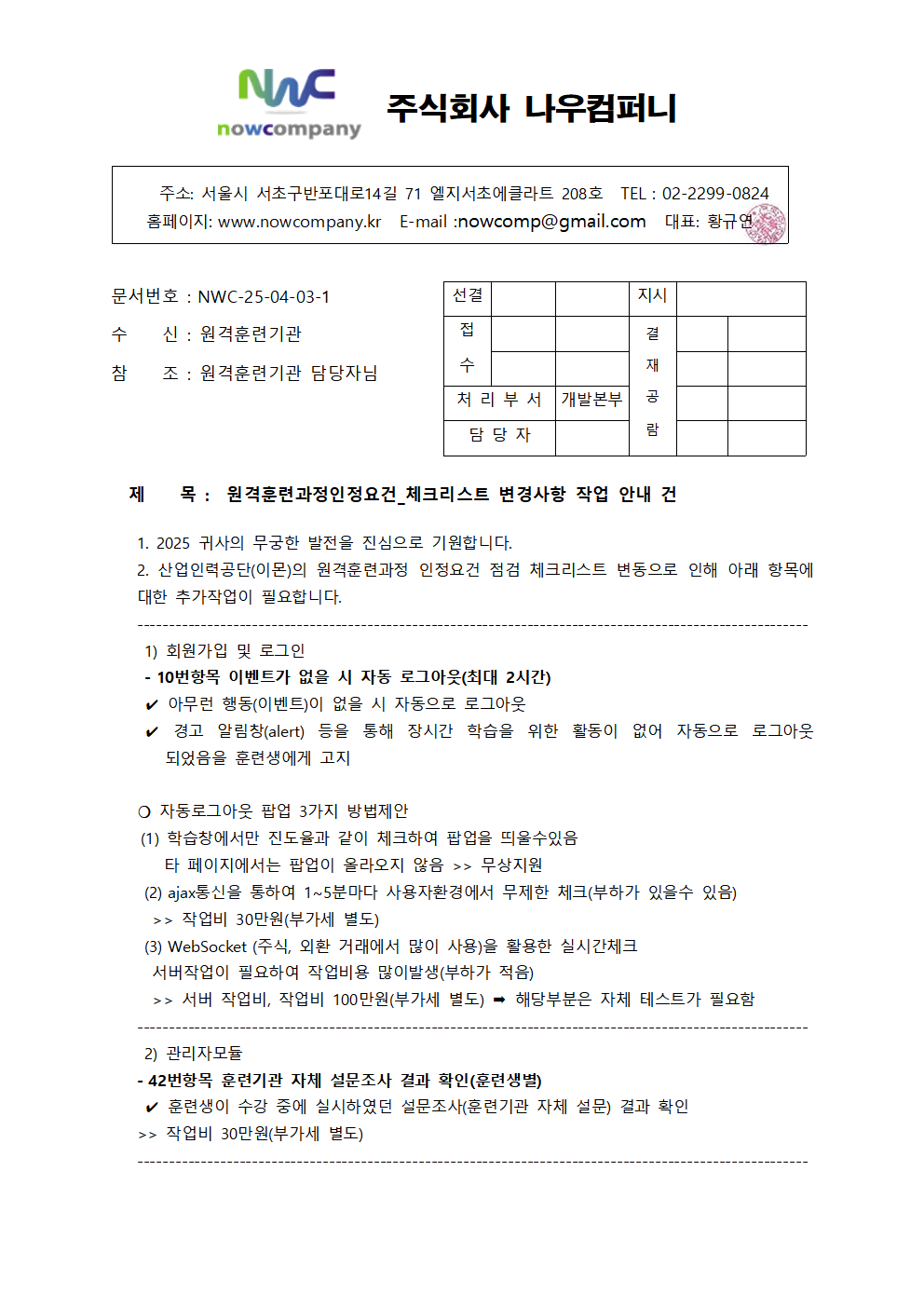 원격훈련과정인정요건_체크리스트 변경사항 작업 안내 건