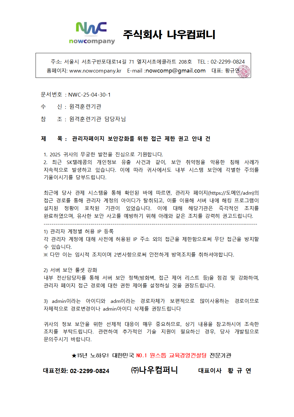 관리자페이지 보안강화를 위한 접근 제한 권고 안내 건