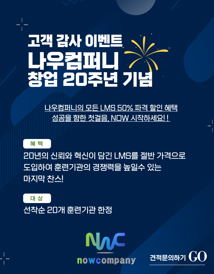 LMS 도입 비용 50% 할인 이벤트를 진행합니다.