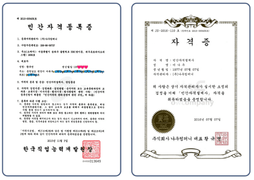 | 민간자격 등록 |