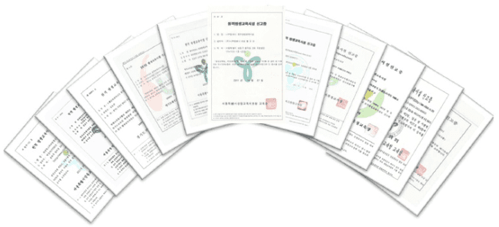 | 1. 평생교육시설신고서 | 2. 운영규칙 | 3. 교육과정 편성표 |