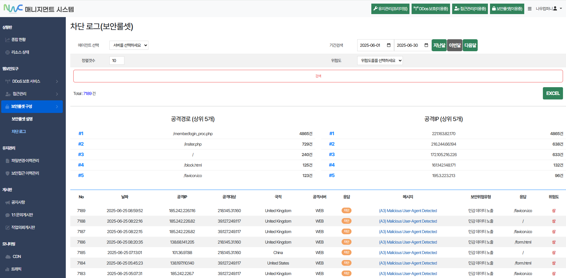 고객사 맞춤형 룰셋 구성과 협업 중심의 보안 운영 지원으로 보다 효율적인 관리가 가능합니다.