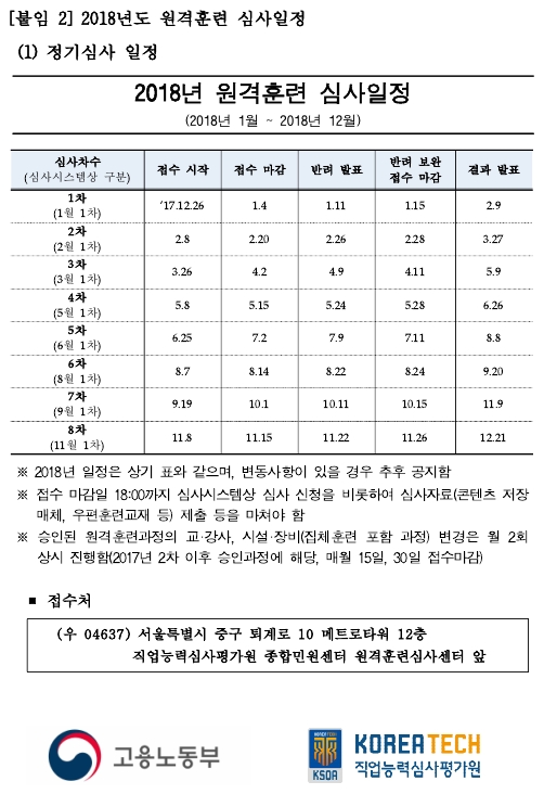 2018년 원격훈련 심사일정
