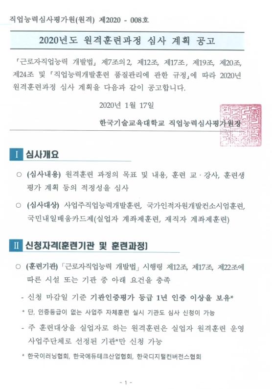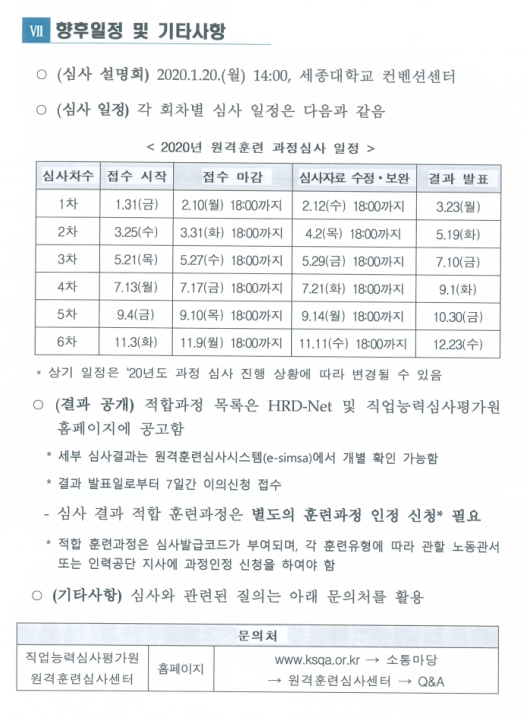 2020년 원격훈련 과정 심사일정