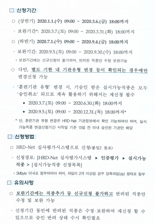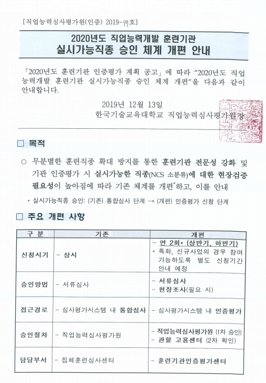 2020년도 실시가능직종 승인체계 개편안내
