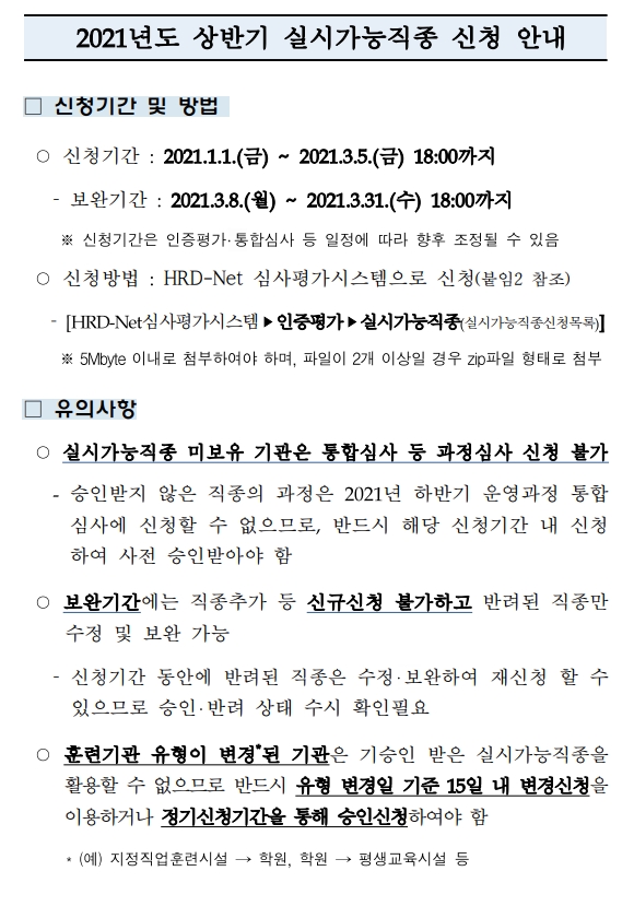 2021년도 상반기 실시가능직종 신청기간 안내
