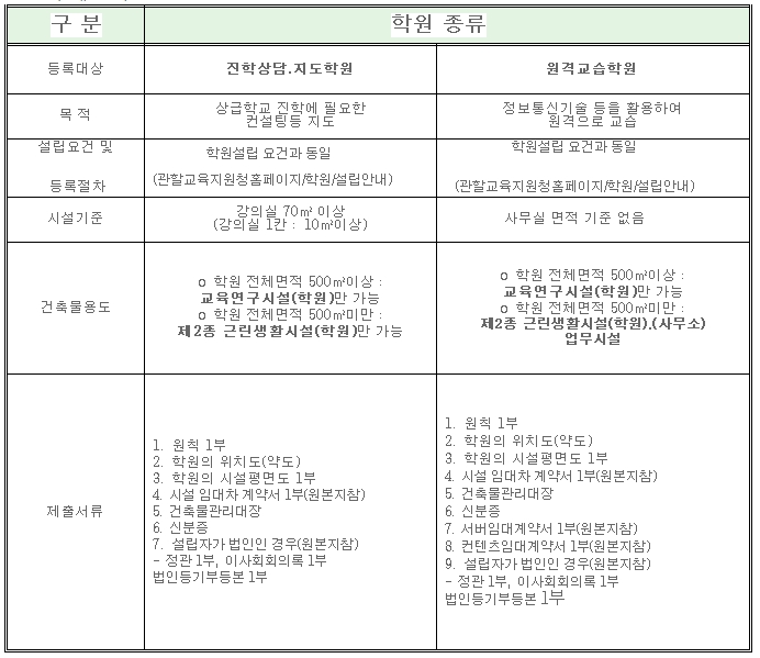 신규교습과정 (진학상담, 원격)학원 등록안내