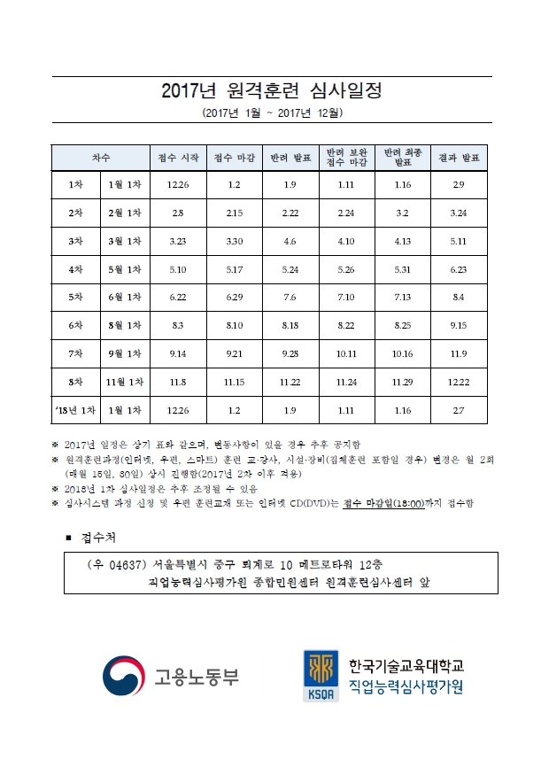 ※ 2017년 일정은 상기 표와 같으며, 변동사항이 있을 경우 추후 공지함