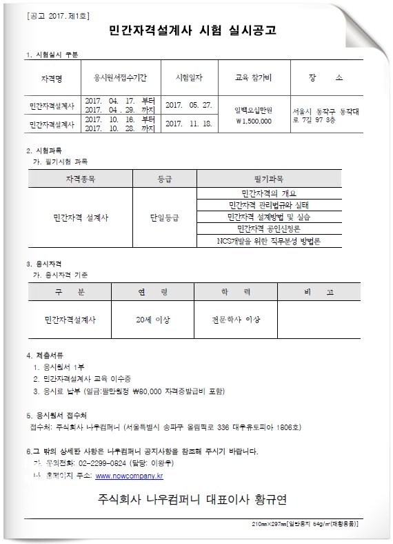 2017년 나우컴퍼니에서 진행하는 민간자격설계사 시험 공고