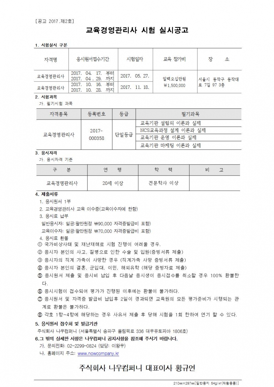 교육경영관리사 시험공고문