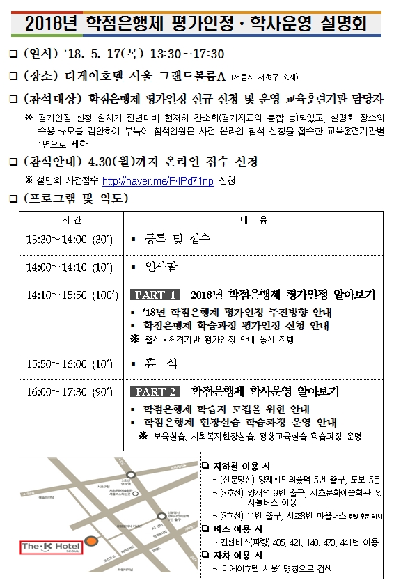 2018년 학점은행제 평가인정·학사운영 설명회