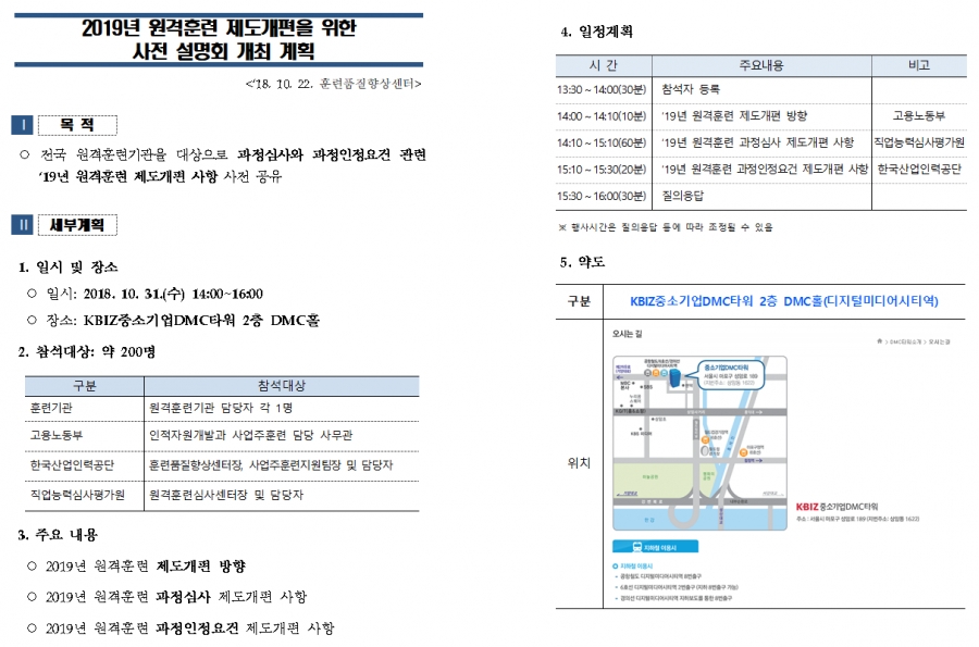 2019년 원격훈련 제도개편을 위한 사전 설명회 개최 계획