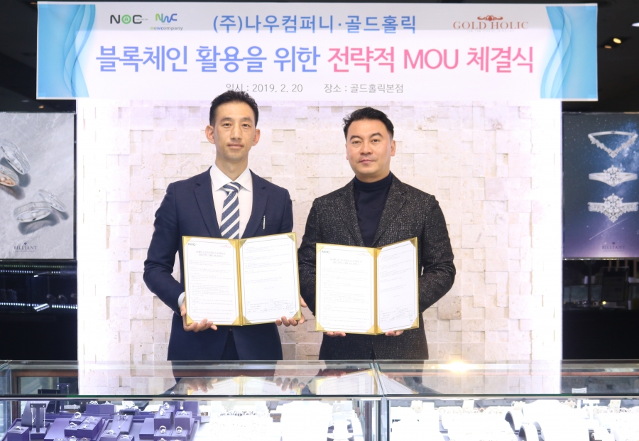귀금속 전문 쥬얼리브랜드 "골드홀릭" 과 (주)나우컴퍼니가 NOWONECOIN (이하"NOC")연동을 위한 업무협력(MOU)를 체결 했다고 밝혔다.